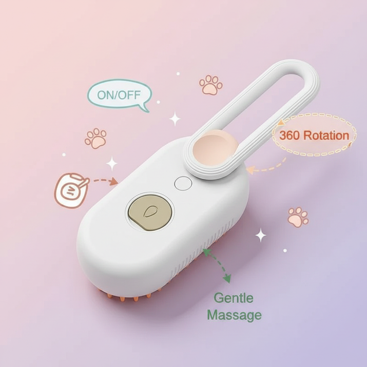 Discover the ultimate grooming experience with our product that combines massage, steam, and a brush to elevate pet care, ensuring comfort and ease during every grooming session.